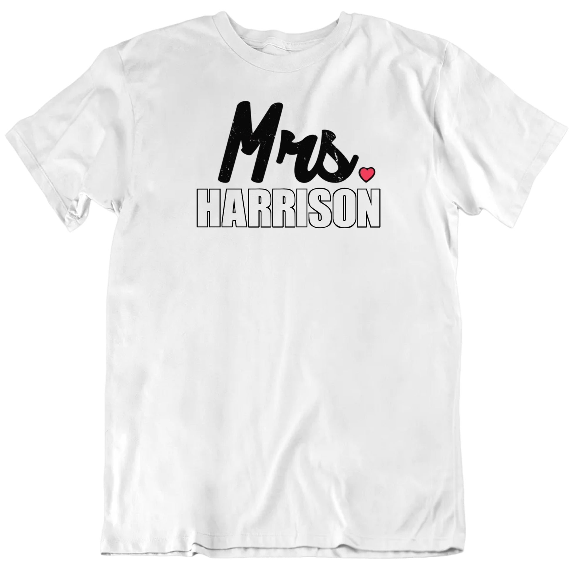 The elegant design features a classic "Mrs." title, making it a meaningful addition to your wardrobe for Valentine’s Day or any time you want to celebrate your love. Whether you’re newly married, recently engaged, or just want to add a personal touch to your Valentine's Day celebration, this t-shirt is a perfect choice.